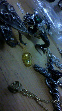 グリーンキュービックなる石を留めています